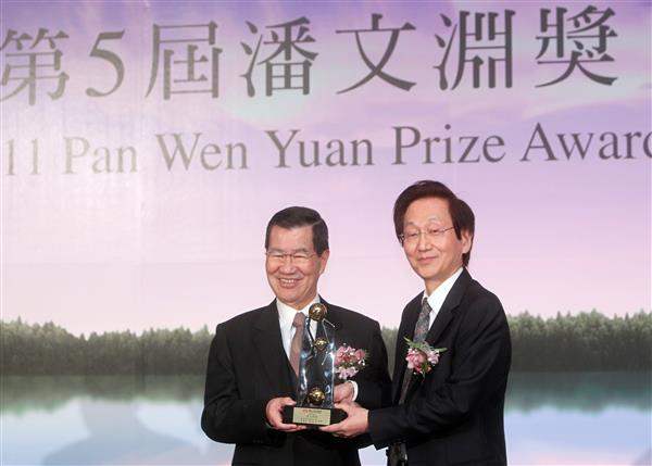 蕭萬長副總統下午出席「第五屆潘文淵獎頒獎典禮」,並期許社會各界繼續效法潘文淵博士的典範,不斷地追求夢想、突破創新,讓臺灣科技產業繼續蓬勃發展。