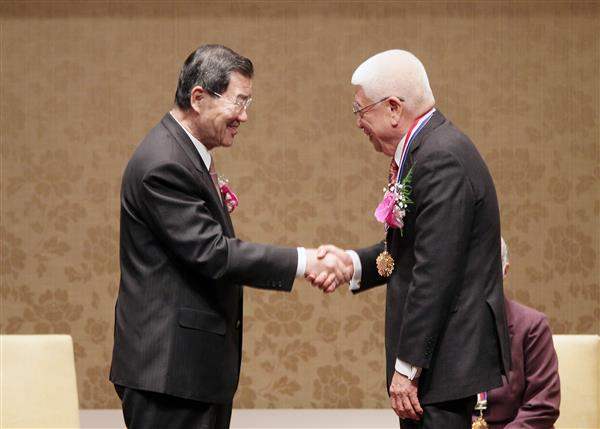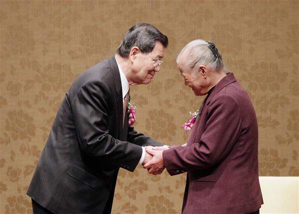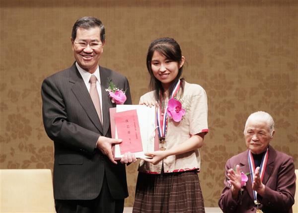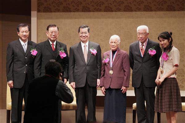 隨後,副總統頒獎給得獎人陳綢、柴松林及沈芯菱等3位分別在慈善、社會及公益服務等領域獲愛心獎的得獎人。