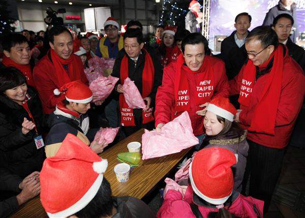 今天適逢耶誕節平安夜,馬英九總統晚間出席在新北市政府前廣場舉辦的2011「和好、疼惜、平安夜」報佳音全國連線活動,共有包括臺北市、新北市、桃園縣、臺中市及臺南市等5個城市連線,和國人同度溫馨的平安夜。