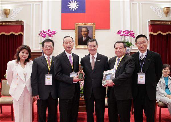 訪賓一行由「國家建築金獎甄選委員會」名譽主任委員朱鳳芝帶領、內政部次長林慈玲陪同,前來總統府拜會副總統。
