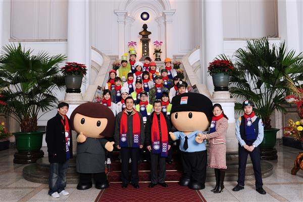 隨後,總統伉儷及副總統伉儷與小朋友共同參與國旗造型蛋糕拼圖,祝福國家在新的一年平安快樂。