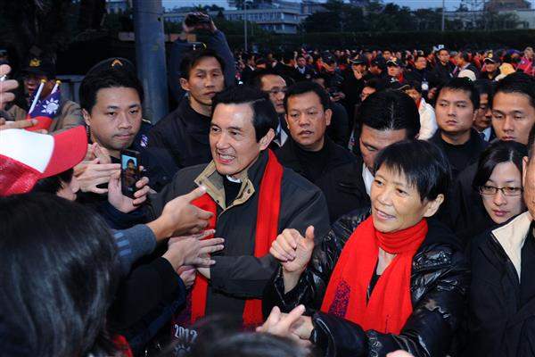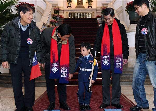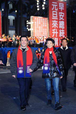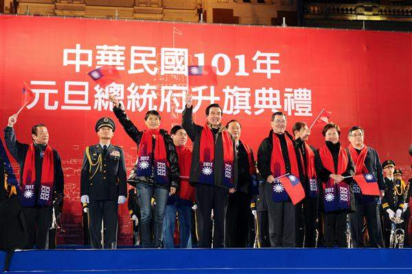 馬英九總統伉儷與蕭萬長副總統伉儷今天上午6時30分出席在總統府府前廣場舉辦的「中華民國101年元旦總統府升旗典禮」,與現場民眾共同迎接中華民國101年的到來。