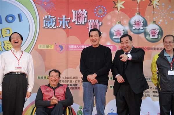馬英九總統下午出席由「中華身心障礙者職業技藝協會」在總統府舉辦的「迎向活力101快樂寶貝、健康成長、歲末聯歡童樂會」,除肯定該協會長年關懷身心障礙者及弱勢兒童,並代表主辦單位致贈兒童代表禮物,讓小朋友們在農曆歲末有個愉快的童樂會。