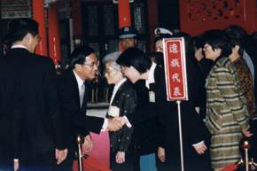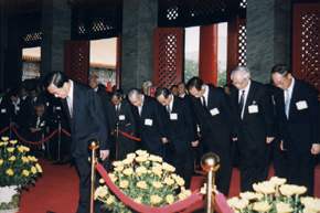 上午十時正,在崇戎樂聲中,總統由總統府秘書長陳師孟陪同抵達忠烈祠。