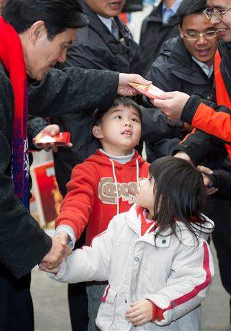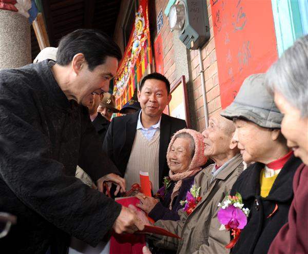 今天是農曆大年初二,馬英九總統一早在行政院客家委員會主委黃玉振及苗栗縣長劉政鴻陪同下,回通宵鎮的馬家庄祭祖,並現場發放福袋,祝福鄉親們龍年行大運!