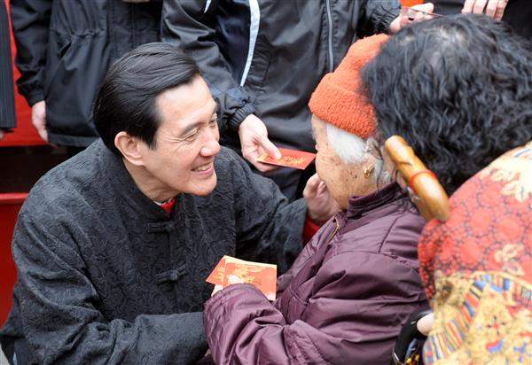 馬英九總統下午由行政院客家委員會主委黃玉振陪同,前往新埔褒忠義民廟及新竹市天公壇祈福參拜,祈求風調雨順、國泰民安,並發送福袋,現場鄉親們反應熱烈。