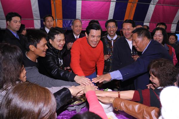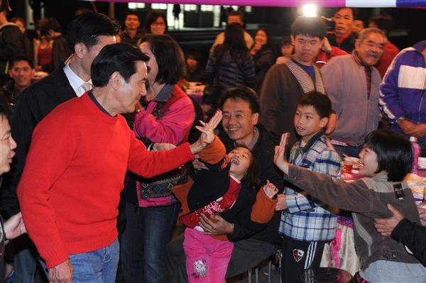 在大年初三的今天,馬英九總統下午由行政院莫拉克颱風災後重建推動委員會執行長林中森及副執行長陳振川等陪同,特地前往高雄市杉林區訪視慈濟大愛村居民,晚間則與小林二村八八風災永久屋住戶餐敘,進一步瞭解住民們目前的生活狀況,並發送龍年福袋,捎來新春的祝福。