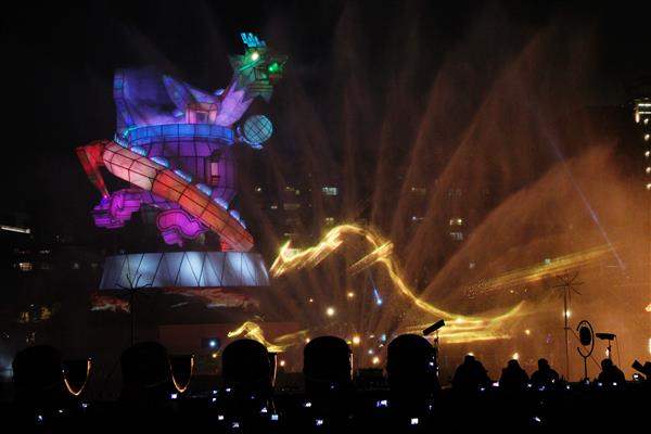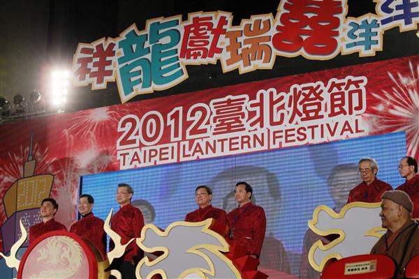 隨後,副總統與行政院副院長陳冲、臺北市長郝龍斌等人以「龍鼓陣」共同啟動主燈「HAPPY龍」,為2012臺北燈節揭開序幕。