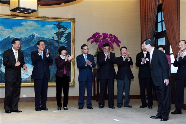 總統府今天上午舉行新、卸任秘書長交接儀式,由蕭萬長副總統監交。