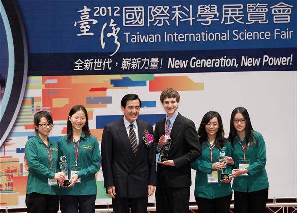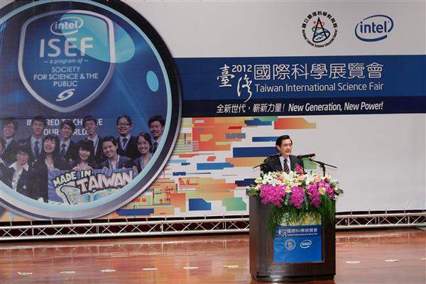 馬英九總統下午由教育部部長蔣偉寧及國立臺灣科學教育館館長朱楠賢陪同,出席「2012年臺灣國際科學展覽會」頒獎典禮,親自頒發「青少年科學獎」,表達政府對科學教育的重視與支持。