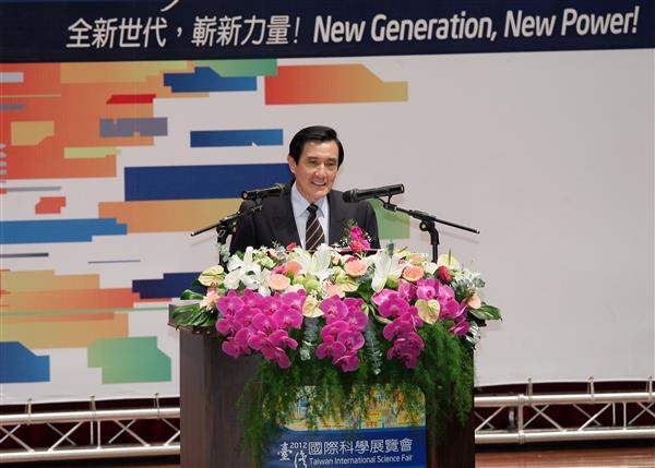 總統以英文致詞時表示,中小學科學教育乃國家科學發展及國家整體競爭力的根基,政府向來十分重視;這次是他第三度參加「臺灣國際科學展覽會」,此一展覽會除提供國內外優秀學生合作與競賽的平台,亦藉此評選我國優秀代表參加美國「英特爾國際科學展覽競賽」及「國際數理學科奧林匹亞競賽」等國際賽事。總統說,今年共有200餘位來自17個國家的青年學子參賽,希望青年朋友們把握機會結交朋友,相互切磋學習,並開拓人際網絡,做為日後創業的基礎。