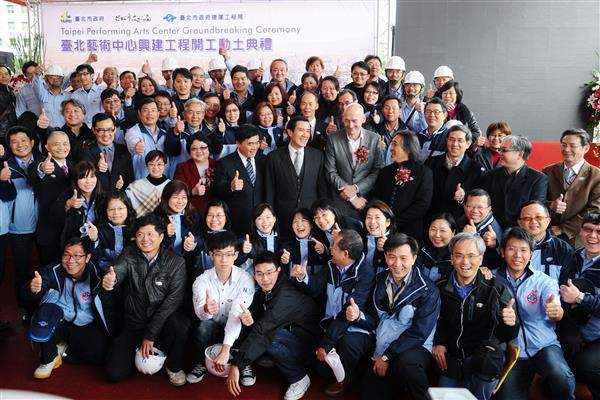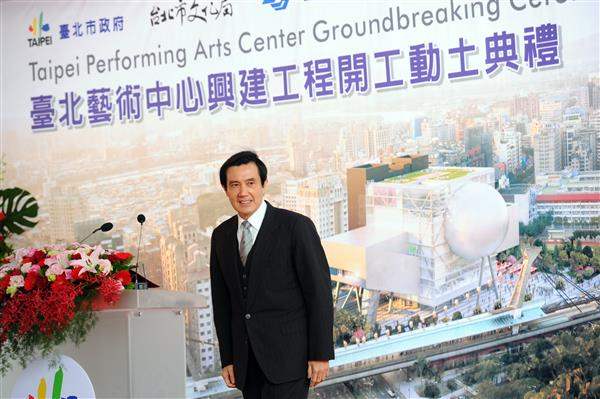 馬英九總統上午由臺北市長郝龍斌陪同出席「臺北藝術中心」興建工程開工動土典禮,期盼該中心能與「大故宮計畫」結合,形成臺北市北區的「文化帶」,讓臺北市成為華人社會的文化領航者。