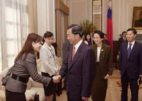 陳總統水扁先生今天接見「留日台灣同鄉會回國致敬團」,對他們專程回國訪問,表達歡迎之意,並期許所有旅日僑胞以堅定的信心與意志,共同支持政府的改革工作。