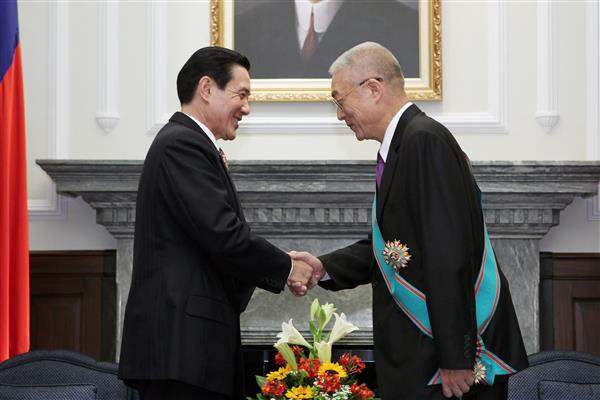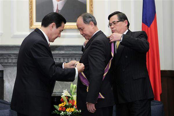馬英九總統今天分別頒贈行政院前院長吳敦義「一等卿雲勳章」、前副院長陳冲「一等景星勳章」及前秘書長林中森「二等景星勳章」,以表彰渠等對國家社會的卓越貢獻。贈勳儀式於上午9時在總統府舉行,總統府秘書長曾永權及第三局局長張國葆均在場觀禮。
