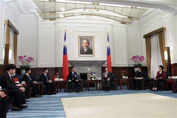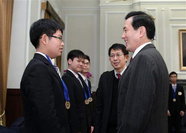 馬英九總統下午接見「2011年第8屆國際國中科學奧林匹亞競賽」我國代表團,對獲獎同學的傑出表現及帶隊教授的悉心指導,表達祝賀與肯定之意。