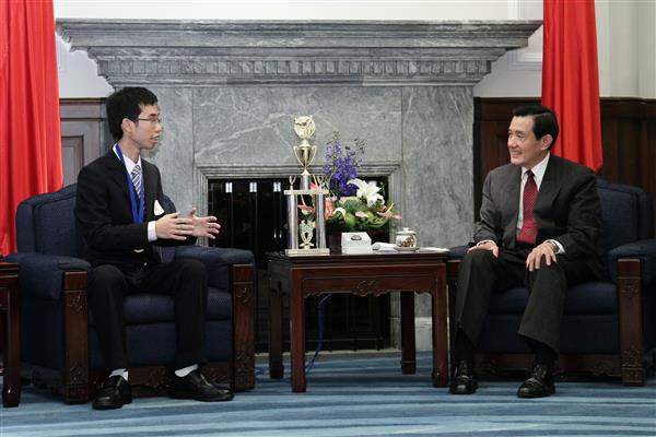 總統表示,「國際國中科學奧林匹亞競賽」迄今已舉辦8屆,我國每年均派團參加,而且屢獲佳績,從2004年起,我國不是第1名就是第2名,金牌數維持至少4面,今年表現依舊傑出,再次蟬聯冠軍;在參加競賽的40個國家、228位學生中,我國6位參賽同學全部奪金,張博鈞同學並獲得「最佳理論獎」,可謂「金光閃閃」。