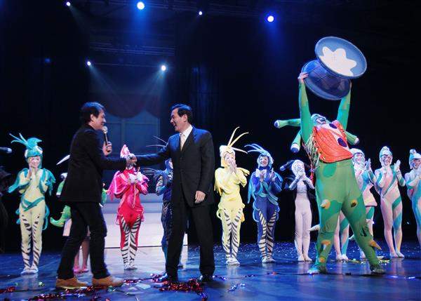 馬英九總統晚間由臺北市長郝龍斌及行政院文化建設委員會主任委員龍應台陪同前往花博公園舞蝶館,全程觀賞舞鈴劇場「奇幻旅程」定目劇,並盛讚該劇「神乎其技、美不勝收」。