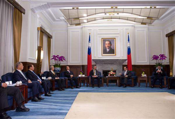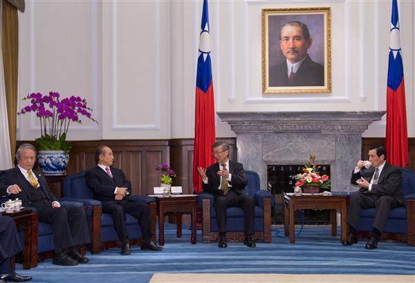 馬英九總統傍晚偕同蕭萬長副總統在總統府與五院院長、副院長及秘書長茶敘,針對推動「黃金十年」政策、司法制度改革、文官制度興革及保障人權等工作,廣泛交換意見。