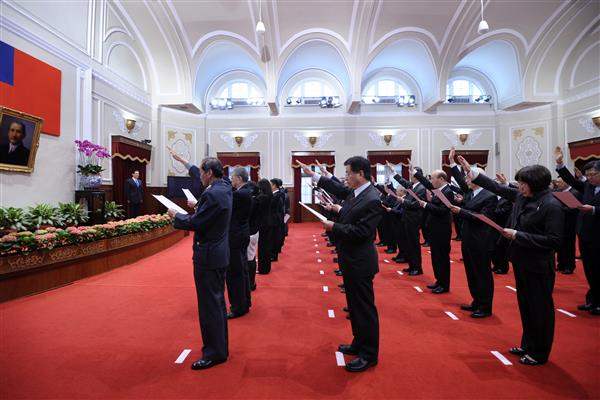 馬英九總統上午在總統府主持新任行政院、司法院及考試院政務首長、副首長宣誓典禮。