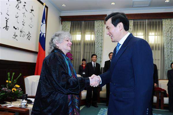 馬英九總統上午接見2009年諾貝爾化學獎得主尤娜特教授(Dr. Ada Yonath),代表我國政府與人民歡迎訪賓來台。