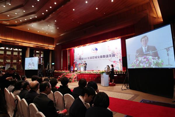 今天是國際婦女節,馬英九總統下午前往臺北圓山飯店參加由「中華民國婦女聯合會」所舉辦的「慶祝101年國際婦女節茶會」,除肯定臺灣婦女地位指數評比及高等教育比例表現亮眼,並說明政府為促進性別平等所做的各項努力。