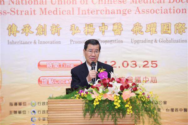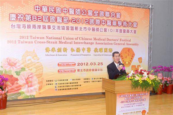 副總統致詞時談到,中醫源遠流長,承繼數千年來的華夏文化傳統,至今我們還會用『華陀再世』、『杏林春暖』來形容醫師的仁心仁術;近年來中醫師在執業上雖遭遇醫事輔助人員與法規協助等問題,但政府將會持續協助改善與提升,讓全國中醫擁有更好的行醫環境。