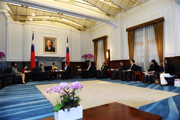 訪賓上午前來總統府晉見總統,國家安全會議副秘書長劉志攻、外交部政務次長董國猷及北美司長令狐榮達也在座。
