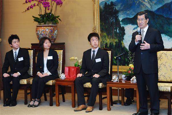副總統表示,臺日人民之間雖然無法直接以語言溝通,但彼此卻擁有兄弟姊妹般的友誼;在座的得獎人係來自日本各地的傑出青少年代表,此次來臺停留時間雖然不長,但希望大家都能把握機會,深入接觸臺灣的民情、風俗及文化,進一步瞭解臺灣。