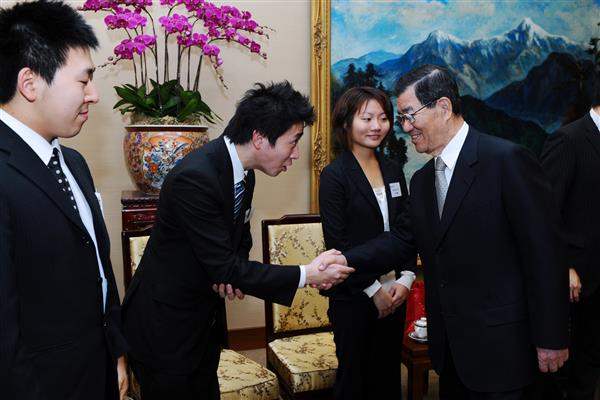蕭萬長副總統上午接見「第九屆臺日文化交流青少年獎學金計畫」得獎學生,再度說明總統上任後在臺日實質關係的具體進展以及政府對臺日青少年交流的重視。