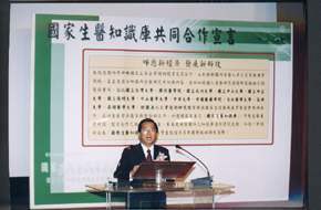 「國家生技醫療產業策進會」從一九九八年開始籌設,經過四年的準備,終於克服萬難,在今天正式成立。阿扁在此,要向在座為國家生物科技發展貢獻心力的所有菁英們,致上最高的敬意與誠摯的謝忱!
