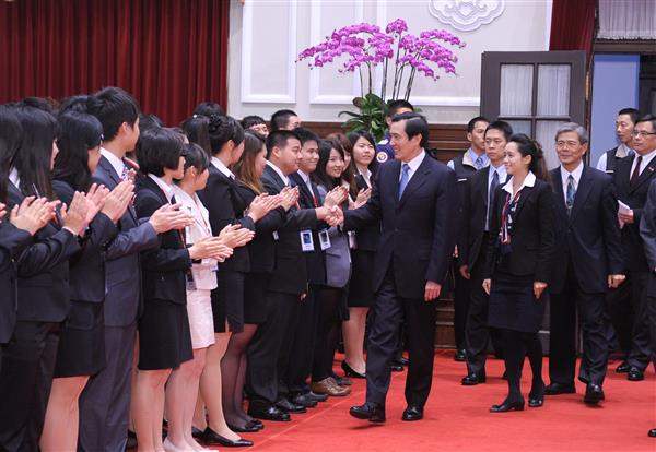 總統提到,由於臺灣面積不大且仰賴國際貿易,因此我們要比其他國家更重視與國際社會往來及融入,而臺灣年輕學子在多個發明設計競賽中均表現亮眼,包括日前我國於「2012俄羅斯阿基米德國際發明展暨發明競賽」中,榮獲41面金牌、31面銀牌及8面銅牌,獎牌數世界第一,足見我們年輕人豐富的創造力,係臺灣的重要資產;此外,政府亦積極推動「校園國際化」,去年來臺的境外學生已達5萬餘人,包括928位來臺修讀學位的陸生及11,227位短期研修生,此舉不僅讓世界走進來,也讓年輕學子不須出國就能培養「將心比心、設身處地、不卑不亢」的國際觀,政府未來將繼續推動「校園國際化」政策,希望境外學生就讀大專院校的人數在民國109年時能達到13至15萬名之數。