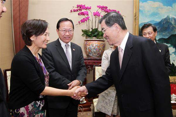 蕭萬長副總統上午接見美國洛杉磯聖瑪利諾市訪華團,對訪賓此行率團與我新北市淡水區締結姊妹市,表達歡迎與感謝之意。