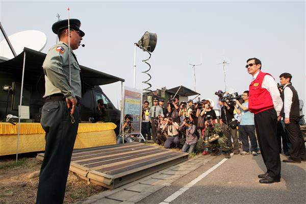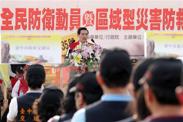 馬英九總統下午視察臺中市101年全民防衛動員(萬安35號)暨災害防救演習,除肯定各演習單位所付出的心力與耐力,並重申「防災重於救災、離災優於防災」、「料敵從寬、禦敵從嚴」及「超前部署、預置兵力、隨時防救」等原則的重要性。