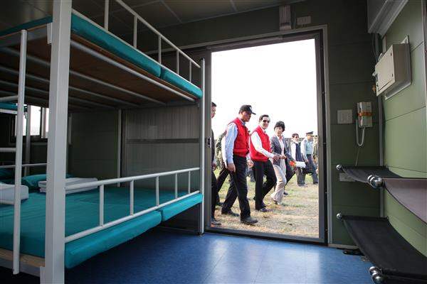 隨後,總統由內政部長李鴻源、國防部長高華柱及臺中市長胡志強陪同,參觀通信系統、淨水裝備車及救援貨櫃等防救設備,詳細瞭解各種設備的功能及應用範圍,具體展現中央政府對災害防救的重視