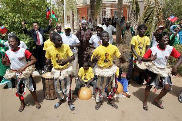在場布國文化表演團體以熱鬧且充滿非洲風情的傳統舞蹈表達歡迎之忱,更以字正腔圓的國語演唱「高山青」,博得現場一致掌聲,馬總統除與布國年青人高聲唱和,並親切地與特地到場列隊歡迎的旅布僑胞握手互動,場面溫馨。