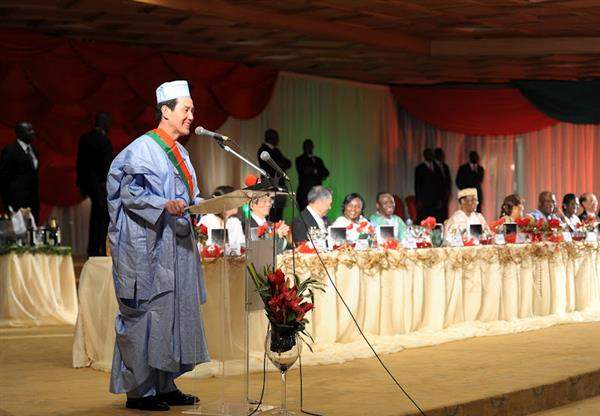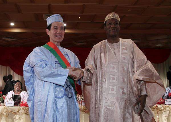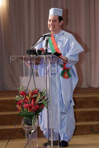 抵達非洲友邦布吉納法索第一天晚間,馬總統穿著龔保雷總統所贈予的國服出席布國歡迎國宴,並受贈象徵該國最高榮譽的國家級「大十字勳章」,布國及我國文化團現場表演助興,場面十分熱烈溫馨。