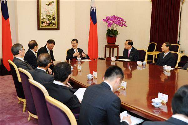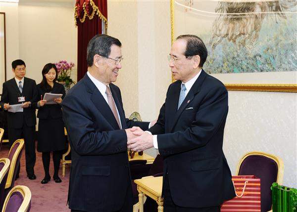 訪賓一行包括「日本交流協會」會長大橋光夫、理事長畠中篤及副長西野幸竜等人,由該會臺北事務所代表今井正陪同,前來總統府拜會副總統,「亞東關係協會」會長廖了以及外交部次長沈斯淳也在座。