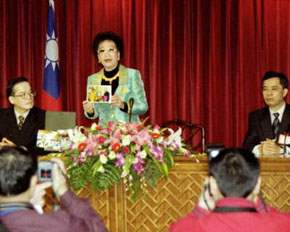 今天的記者會是由隨同副總統出訪的總統府副秘書長吳釗燮主持,在場作陪的有外交部長簡又新、總統府副秘書長陳哲男以及立委張旭成。