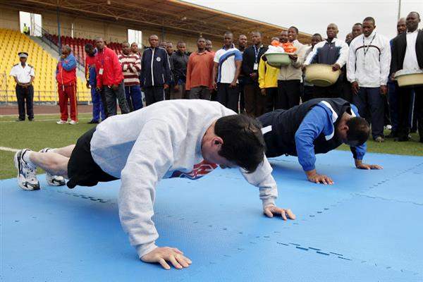 今天是馬英九總統「仁誼之旅」訪問史瓦濟蘭的第二天。上午7時(臺北時間下午1時),馬總統與史王恩史瓦帝三世在史國國家體育場進行慢跑友誼交流。