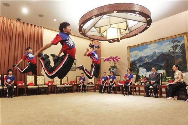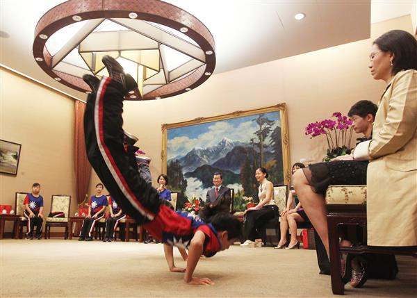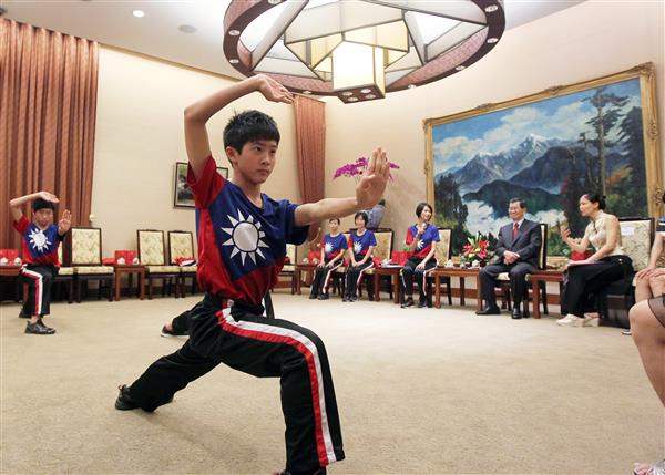 隨後,副總統欣賞「梅門功藝坊」參與「2012秘魯國際藝術節」的成果影片,以及梅門小俠現場的武學功夫表演,對小朋友所展現的力與美留下深刻印象。