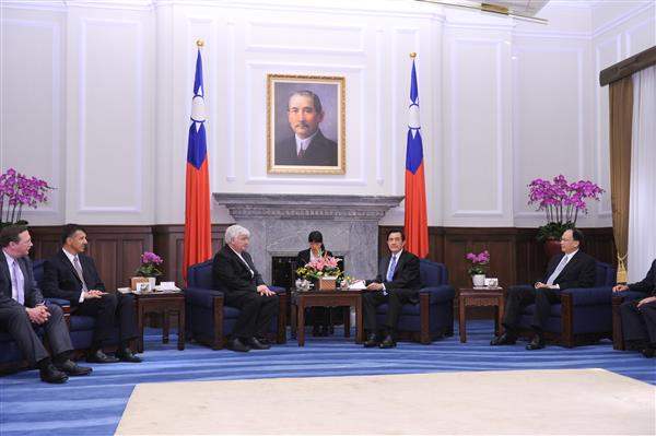 馬英九總統下午接見「歐洲議會」副議長蘇揚(László Surján)與福拉薩(Oldrich Vlasák),對於兩位副議長聯袂訪華,特別代表我國政府及人民表達誠摯歡迎,也感謝「歐洲議會」去年5月通過決議,支持我國以觀察員身分加入國際重要組織,同時再度籲請歐盟及其會員國與臺灣洽簽「經濟合作協定」(ECA),以共創繁榮。
