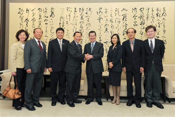 訪賓一行,由國立台中教育大學校長楊思偉陪同,前來總統府拜會副總統,教育部次長林聰明在場陪同。