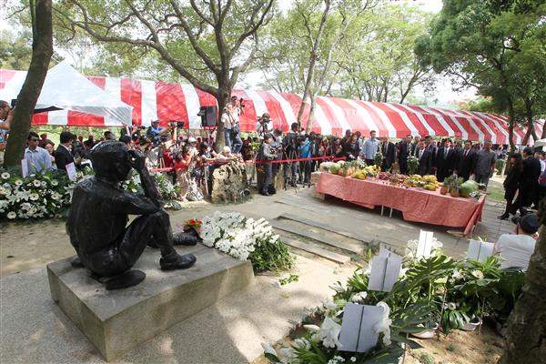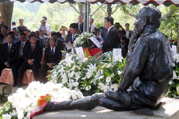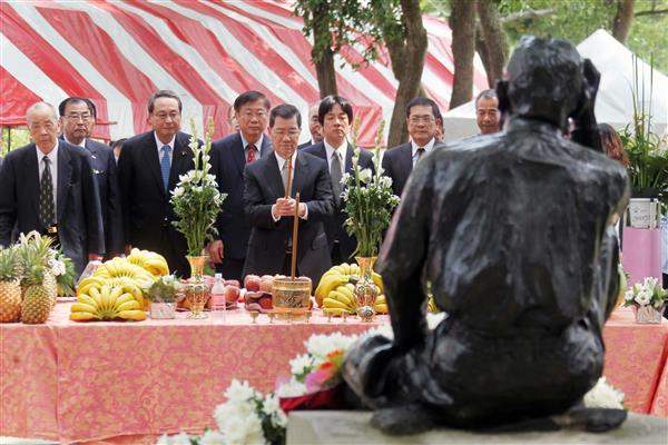 蕭萬長副總統下午專程前往台南烏山頭水庫,出席「八田與一技師逝世70週年」追思會。