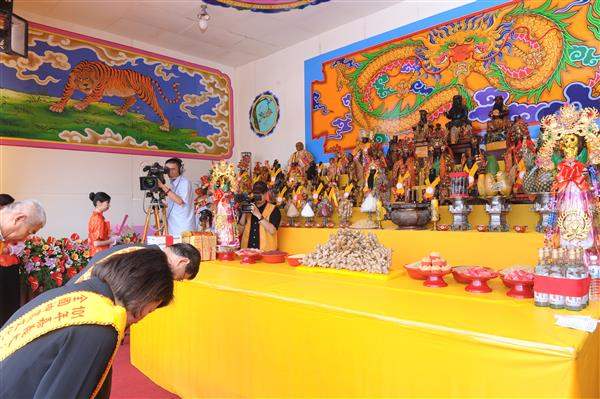 副總統於致詞時談到,「大天宮」創建於清朝康熙46年(西元1707年),供奉神農聖帝,迄今已有305年的歷史;民國61年大天宮奉神農聖帝諭示,將伏羲及軒轅兩位聖帝合祀一宮,並奉祀神農聖帝駕前金雞神,成為臺灣廟宇中,唯一集三皇聖帝於一宮,並祭祀金雞神的皇宮聖廟。