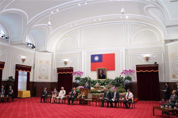 「中華建築金石獎」活動委員會委員蔡正元今天率領52名得獎代表前來總統府晉見總統,內政部長李鴻源及營建署副署長許文龍也在座。