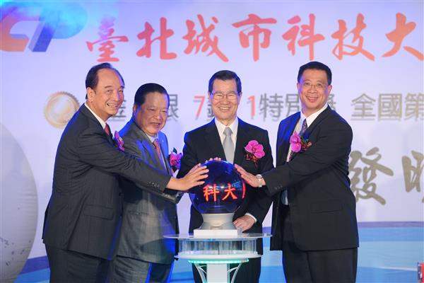 隨後,副總統與總統府資政陳炯松、「臺北城市科技大學」董事長鄭逢時及校長連信仲等人共同揭展,並參觀成果展。