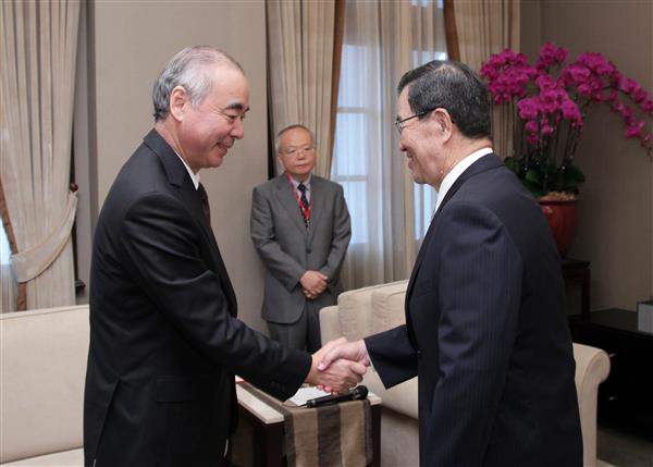 蕭萬長副總統下午接見「日本交流協會」臺北事務所新任代表樽井澄夫,代表政府與人民誠摯歡迎樽井代表來華履新。