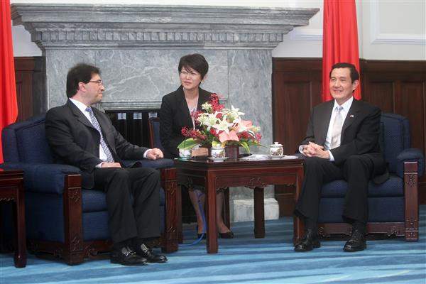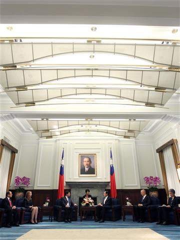 為祝賀我國第13任總統、副總統宣誓就職典禮,瓜地馬拉共和國外交部長卡巴耶羅斯(Harold Caballeros)率致賀團,下午前來總統府晉見總統,包括副總統當選人吳敦義、外交部常務次長柯森耀等人均在座陪同。