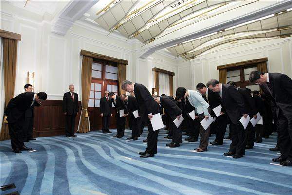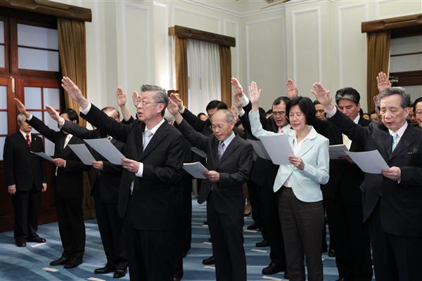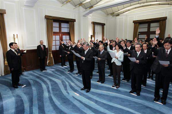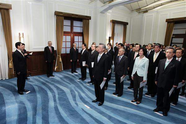 馬英九總統上午在總統府主持「行政院院長暨各部會首長宣誓典禮」。