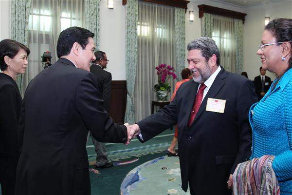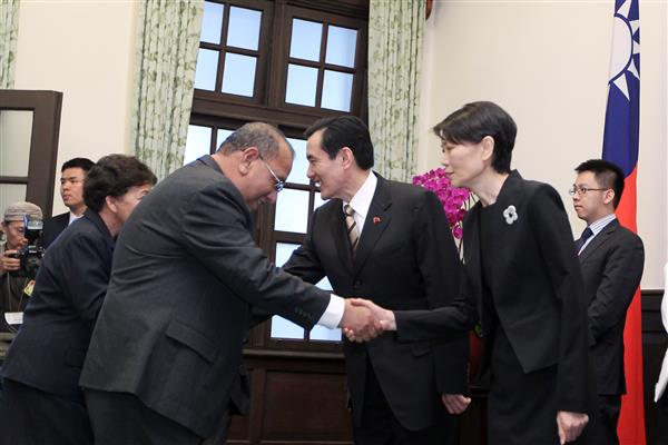 馬英九總統伉儷偕同吳敦義副總統伉儷上午在總統府接受來華參加「中華民國第13任總統、副總統宣誓就職典禮」的邦交國與友好國家元首、特使及政要友人致賀。